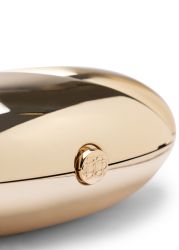 The Ameera clutch from Jonathan Simkhai is crafted in gleaming gold-tone metal with a sculptural, pebble-inspired silhouette. Designed with a polished clasp fastening and a slim detachable chain strap, this signature accessory adds a modern statement touch to evening looks.