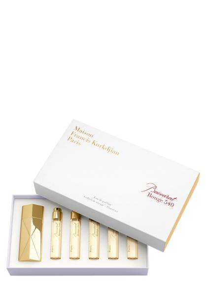 - Bring the iconic Baccarat Rouge 540 fragrance with you wherever you go, in your handbag or luggage, thanks to the travel set containing our Globe Trotter travel spray case in gold and 5 x 0.37 fl.oz. refills. An eau de parfum in which the aerial notes of jasmine and the radiance of saffron carry the mineral facets of ambergris and woody tones of freshly cut cedar. A graphic and highly condensed signature.