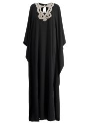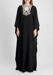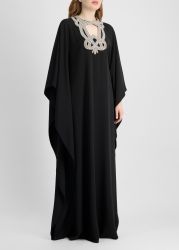 Black crystal-embellished crepe kaftan