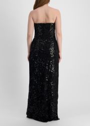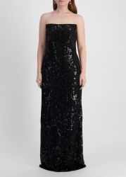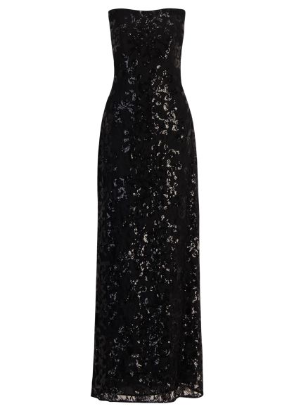 Black sequin-embellished lace maxi dress