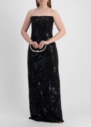 This dress from Avaro Figlio is crafted from ornate sequinned lace, featuring a strapless corset bodice that sculpts the frame before falling into a sheer maxi-length silhouette for a dramatic finish.
