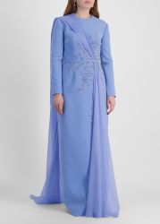 Blue bead-embellished crepe and mousseline gown