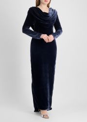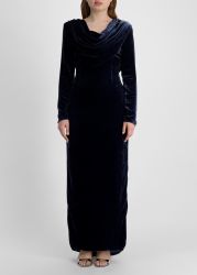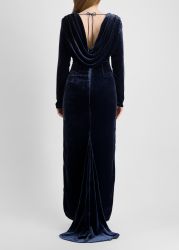 This maxi dress from ROTATE Birger Christensen exudes vintage-inspired glamour, crafted from plush velvet that drapes beautifully through a cascading cowl neck and relaxed sleeves, flowing into an effortlessly fluid silhouette.