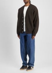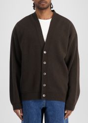 This cardigan from Les Benjamins is crafted from a refined wool blend and cut to a relaxed profile with a deep v-neck and soft drop shoulders, while ribbed trims introduce a quiet touch of texture.