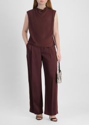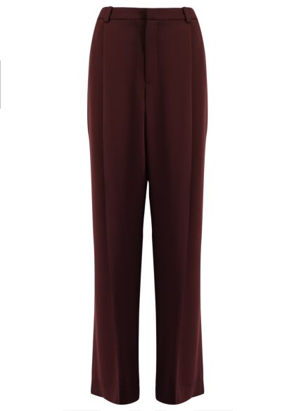 Burgundy wide-leg satin trousers