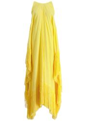 Bambolino yellow fringe-trimmed linen kaftan maxi dress
