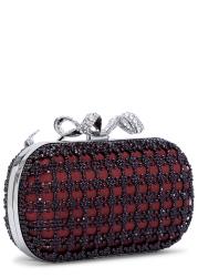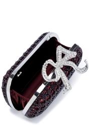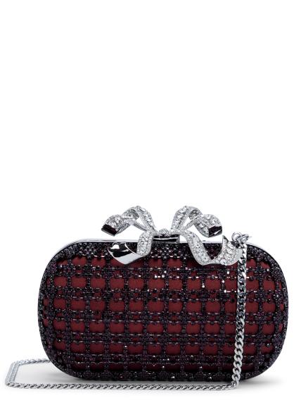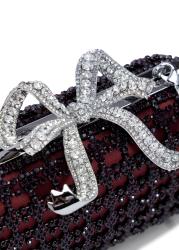 This clutch from Self-Portrait features a chainmail grid exterior topped with a striking large crystal bow, merging edgy glamour with feminine sparkle.