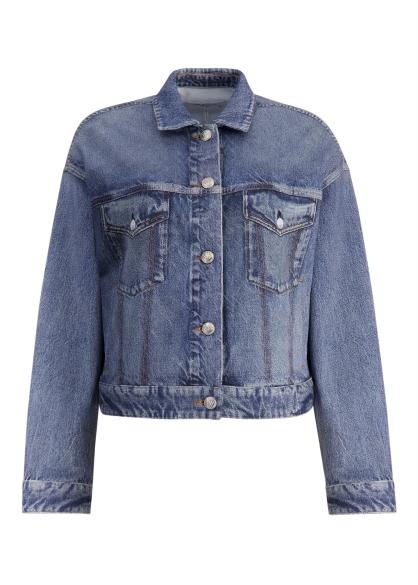 The Miramar jacket from Rag & Bone is a clever hybrid of a trucker jacket and a hooded sweatshirt, crafted from cotton terry that is ultra-soft inside and digitally printed outside to mimic denim. This signature style features functional drawcords, buttoned cuffs, and drop shoulders that elevate its relaxed appeal.