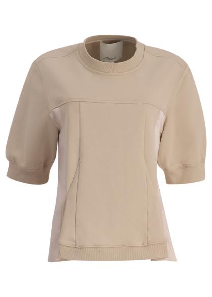 3.1 Phillip Lim blends sporty ease with feminine detail in this cotton terry sweatshirt, featuring puffed sleeves, a flounced hem, and lustrous satin panelling at the sides and back for a softly structured contrast.