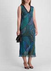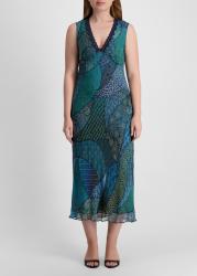 A kaleidoscope of patchwork-style placement prints brings bohemian charm to the Cyrus midi dress from Rixo. Crafted from crinkled georgette, this sleeveless style features a lace-trimmed V-neck, empire waist, and a fluid bias-cut skirt.