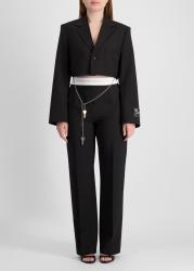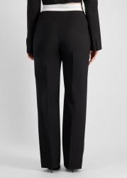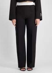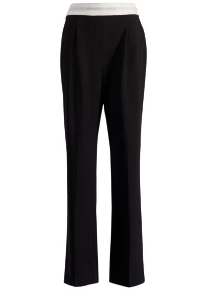 These wool-blend trousers by Alexander Wang feature a tapered silhouette with front pleats and a signature elasticated logo waistband, blending tailored elegance with a modern edge.