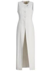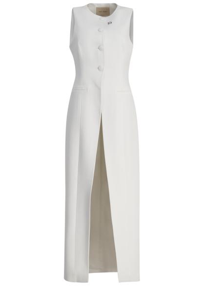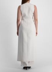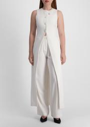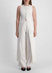 This structured vest from Essin Baris redefines tailoring with its elongated silhouette, tonal buttons, and clean lines, offering a modern layering piece that balances minimalism with sharp sophistication.