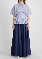 The Clarity trousers from Palmer//Harding are tailored from indigo denim in a wide-leg silhouette. A structured high waistband with stitched detailing enhances the clean lines, while a discreet side zip ensures a seamless fit.