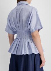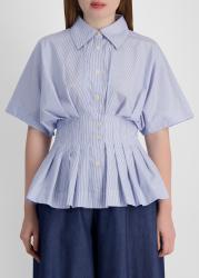 The Courage shirt from Palmer//Harding is crafted from striped cotton poplin, featuring a collared neck and short sleeves. Intricate pleating cinches the waist and shapes a flattering hourglass silhouette.