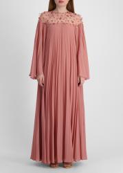 The Efsun dress by Nihan Peker captures ethereal elegance with a sheer yoke adorned in glistening sequins and bead embellishments. The relaxed style features flared sleeves and a pleated silhouette that falls to a maxi-length hem.