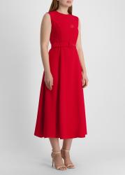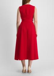 The dress from Dalood is crafted in a sleeveless silhouette with a sleek, straight neck and a cinched waist that defines the figure before falling into a graceful mid-length skirt, striking a balance of poise and modern elegance.