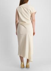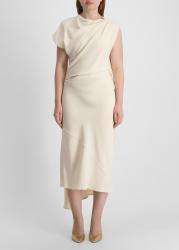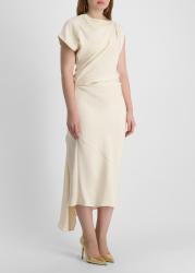This satin maxi dress from Proenza Schouler is defined by soft asymmetric draping and artful gathering that enhances its fluid silhouette, while the short sleeves add a touch of timeless elegance.