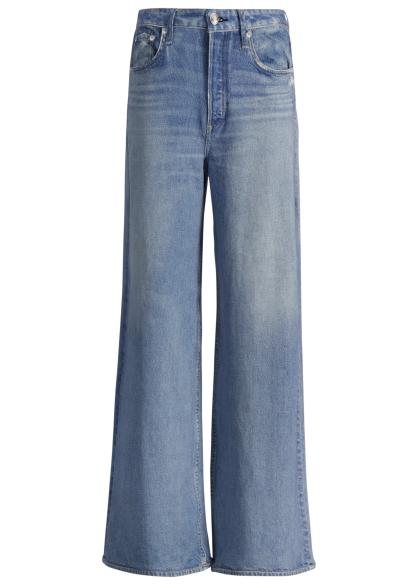 The Sofie trousers from Rag & Bone merge comfort and illusion, crafted from cotton terry cloth that is ultra-soft inside yet printed outside to resemble denim. This high-rise style features super-wide legs, flared hems, and digitally printed denim details, bringing a playful twist to a classic silhouette.