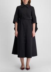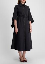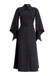 The Devoted midi dress from Palmer//Harding is crafted from a structured cotton blend with a subtle denim finish featuring a classic collar, buttoned front, and flared sleeves. A self-fabric belt cinches the relaxed a-line shape to create a defined, feminine silhouette.
