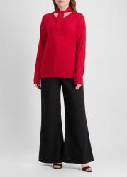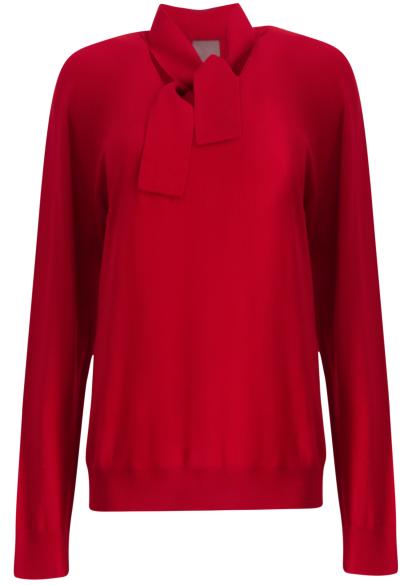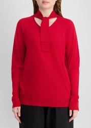 Red scarf-detail wool top