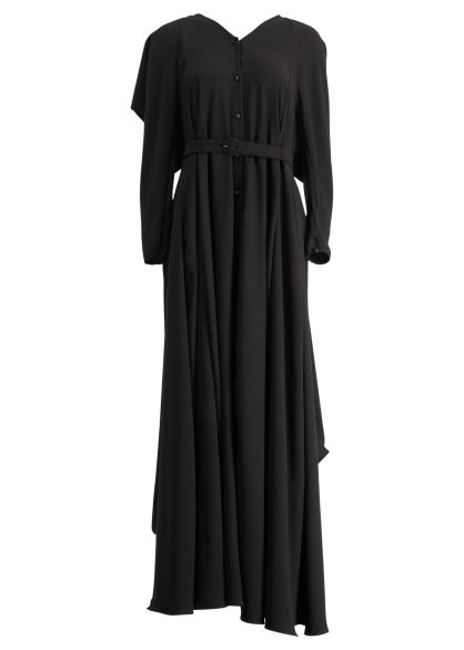 In your arms black asymmetric crepe maxi dress