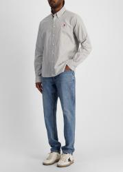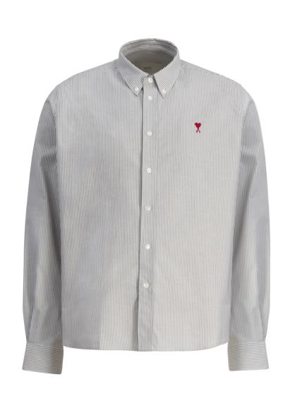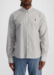 The shirt from AMI Paris is crafted from striped cotton in a classic fit, detailed with a crisp button-down collar and the iconic Ami de Cœur embroidery that captures timeless Parisian elegance.