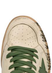 The Ball Star sneakers from Golden Goose channel playground nostalgia with a panelled leather upper, a green star patch, and graffiti-style scribbles along the sole for an edgy, lived-in finish.
