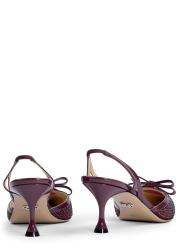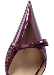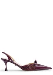 The Triangle slingback pumps from Mach & Mach feature sharp pointed toes with triangular cut-outs layered over mesh. Tonal rhinestones accent the sides, adding a refined shimmer to the sculpted silhouette.