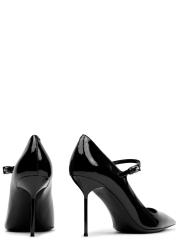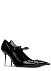 The Lidia Mary Jane pumps by Paris Texas elevate a classic silhouette in patent leather, featuring a pointed toe and a delicate strap set atop a sleek pin heel.
