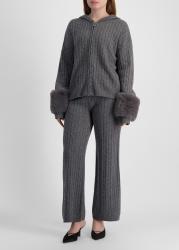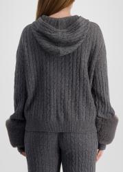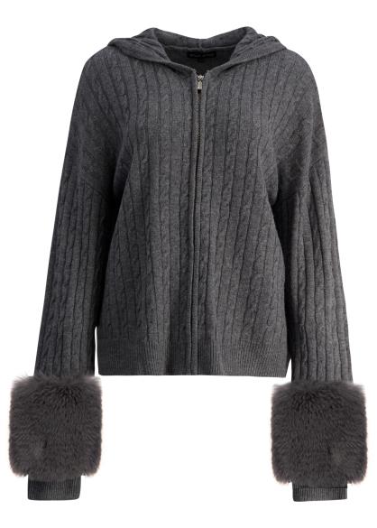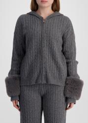 This cardigan from Izaak Azanei is crafted from a luxurious wool and cashmere blend with a cable-knit texture and relaxed zip-up silhouette with a classic hood. Tone-on-tone faux fur cuffs add a luxurious touch to this statement-making piece.