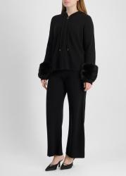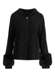 This jacket from Izaak Azanei is knitted from a luxurious wool and cashmere blend, offering warmth with a refined edge. The relaxed silhouette is elevated with a drawstring hood and plush fox fur cuffs for a touch of opulence.