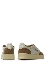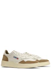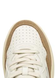 The Medalist sneakers from Autry channel vintage court heritage through a low-top silhouette crafted in smooth white goatskin. Soft brown suede inserts add textural depth, while the cushioned rubber sole grounds the pair in everyday comfort.