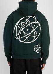 The Kenzo x Futura 2000 hooded sweatshirt is crafted from a light jersey fabric with padded construction in a relaxed silhouette, featuring bold graffiti artwork across the front and an oversized graphic at the back combining the signature Boke flower with the atom motif.