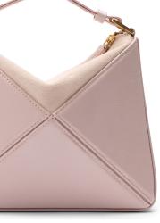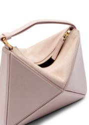 The Mini Flex Bag from Mlouye transforms geometry into a sleek statement, crafted with angular leather panels and a suede top that shapes its sculptural silhouette. A zip closure and a detachable shoulder strap complete the design with practical ease.