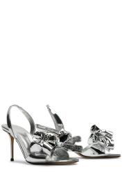 The Le Cadeau slingback sandals from Mach & Mach channel futuristic elegance in mirror leather, where a crinkled bow accent unfolds like molten metal above a sleek, sky-high heel.