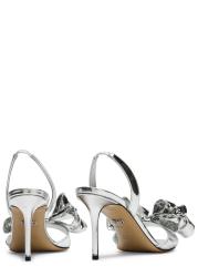 Le Cadeau 95 silver bow-embellished mirror leather sandals