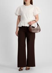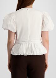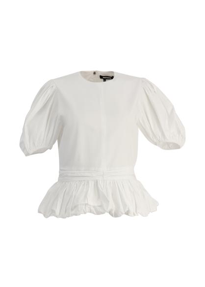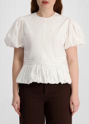 This top from ROTATE Birger Christensen is crafted from crisp cotton, shaped with a clean round neck and voluminous puff sleeves, while a softly gathered peplum hem adds playful structure to the silhouette.