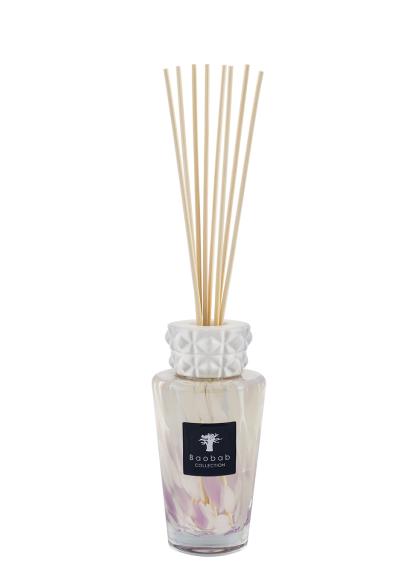 The Totem White Pearls diffuser’s glass contains white and powder pink details. Our glass artisans’ dexterity means that each bottle is one of a kind. Its matte white ceramic cap, sculpturally alluring, can delicately be placed on the bottle as an adornment that gives it a refined presence.
