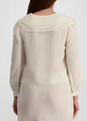 Inspired by vintage nautical styles with a contemporary touch, the Emelin blouse from Rixo is crafted in fluid silk with a tiered sailor-style collar, a delicate rosette detail, and blouson sleeves that bring an airy, refined finish.