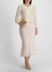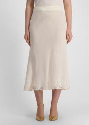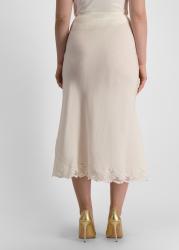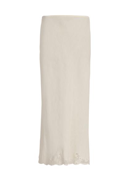 Crystal ivory lace-trimmed linen-blend midi skirt