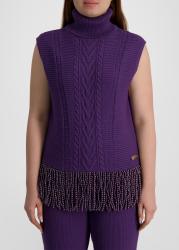 This top from Izaak Azanei is crafted in a rich cable-knit design, defined by a sleeveless silhouette and a high roll neck. Pearl fringe trim introduces fluid movement and lends a statement finish.