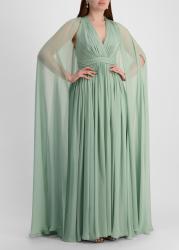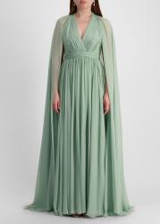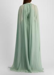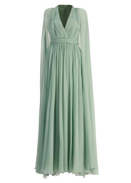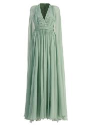 Green cape-effect silk maxi dress