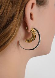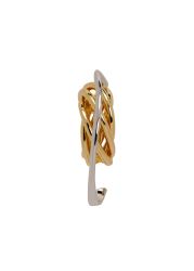 The Chelsea hoop earrings from Demarson reimagine classic elegance with a modern twist, featuring interwoven gold-tone strands cradled within sleek silver arcs for a sculptural, two-tone statement.