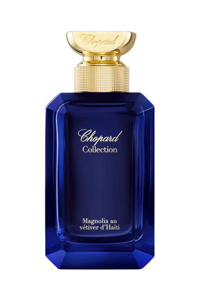 - In this Gardens of the Tropics collection of four eaux de parfums for men and women, Chopard pays tribute to four most noble, natural ingredients, vetiver, magnolia, vanilla and neroli. Magnolia au Vetiver d-Haiti EDP combines the enchanting floral scent of magnolia with vegetal amber and the finest sustainable vetiver (from Debouchette in Haiti) to create the heart of the fragrance, endowing it with a delicate and sensual personality. Top notes of violet leaves and pink pepper are laced together with vibrant white wood and sandalwood base notes, revealing natures rich abundance in a most enticing and surprisingly complex way.