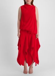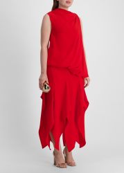 Denise red asymmetric crepe maxi dress