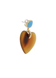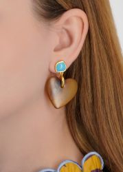 Lizzie Fortunato is known for jewellery that blends influences from nature, architecture, and art, and the Dulcinea earrings are one example. The signature piece features a turquoise-coloured stone top hovering over a sculpted horn heart, creating a unique drop silhouette.