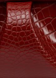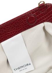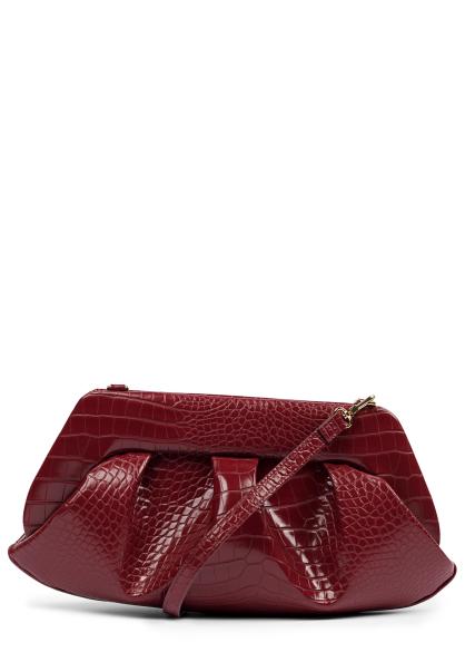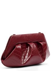 The Emera clutch from THEMOIRÈ is crafted from glossy vegan leather embossed with a crocodile effect, designed in a softly pleated silhouette with a structured top frame for modern elegance.