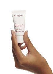 - Clarins cooling, non-oily gel minimises the look of puffiness and dark circles