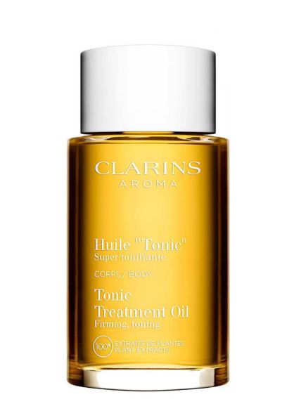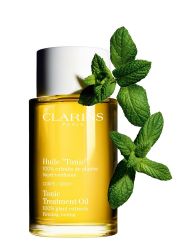 - Clarins best selling firming body oil-with 100% pure and powerful plant extracts including Rosemary, Geranium and Mint making a healthy formula-helps firm, tone and improve elasticity, smoothing the appearance of stretch marks. Hazelnut Oil locks in moisture to leave body skin soft, satiny smooth and elastic. Skin is prepared to face the strains of weight changes and stretching. The Tonic Body Treatment Oil is effective in removing stretch marks. Aromatic natural botanicals promote an overall feeling of well-being. A blend of natural agents in one body oil, to indulge in. Spending some to really relax and massage your skin with Clarins body care, can help to refresh and revitalize. Especially recommended for use during pregnancy and dieting. Suitable for all skin types.