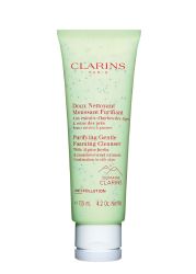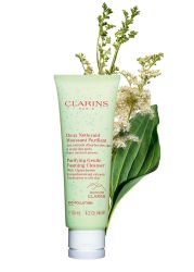 - A fan favourite of those with oily to combination skin, this cleanser is enriched with the gentle complex from Domaine Clarins (organic yellow gentian and organic lemon balm), as well as a meadowsweet extract (organic plant) and a salicylic acid derivative. It gently cleanses and removes make-up, purifies and refines the skin texture. Thanks to gentle surfactants, it cleanses while helping preserve the balance of the skins microbiota.